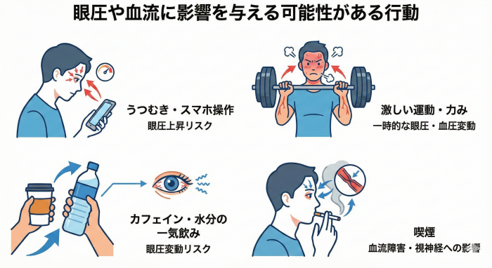 要注意!眼圧や血流に影響を与える可能性がある行動